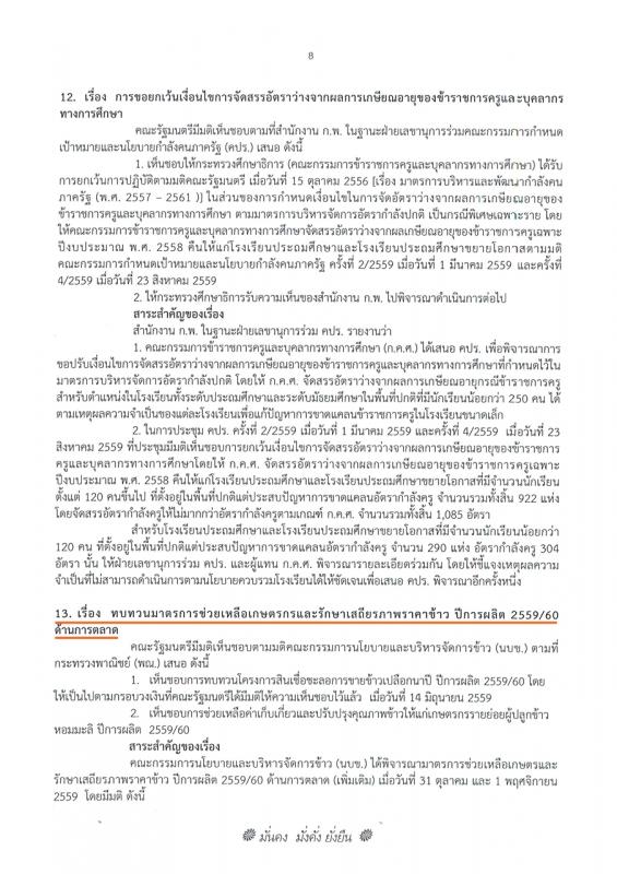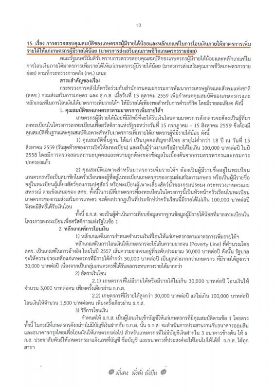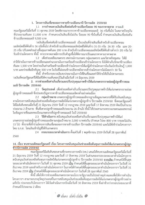 สรุปสาระสำคัญด้านการเกษตร ในการประชุมคณะรัฐมนตรี เมื่อวันที่ 1 พฤศจิกายน 2559 เวลา 9.00 น. ณ ห้องประชุม 501 ตึกบัญชาการ 1 ทำเนียบรัฐบาล