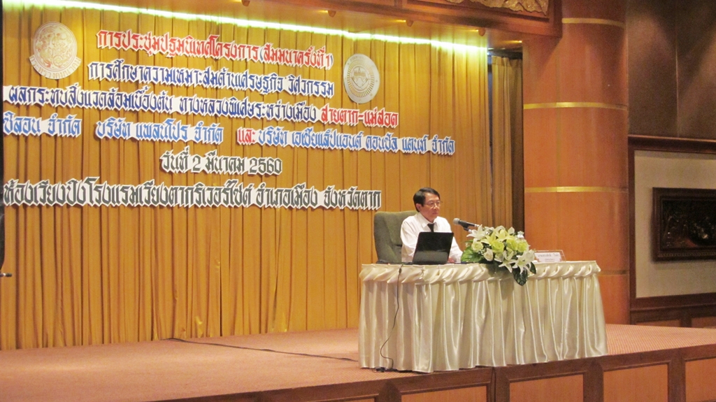การประชุมปฐมนิเทศน์โครงการ การศึกษาความเหมาะสม ด้านเศรษฐกิจ วิศวกรรม และผลกระทบสิ่งแวดล้อมเบื้องต้น ทางหลวงพิเศษระหว่างเมือง สายตาก-แม่สอด