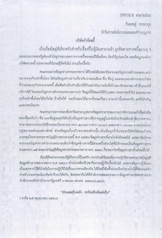 5) บทความเรื่อง บริษัทจำกัดหนี้