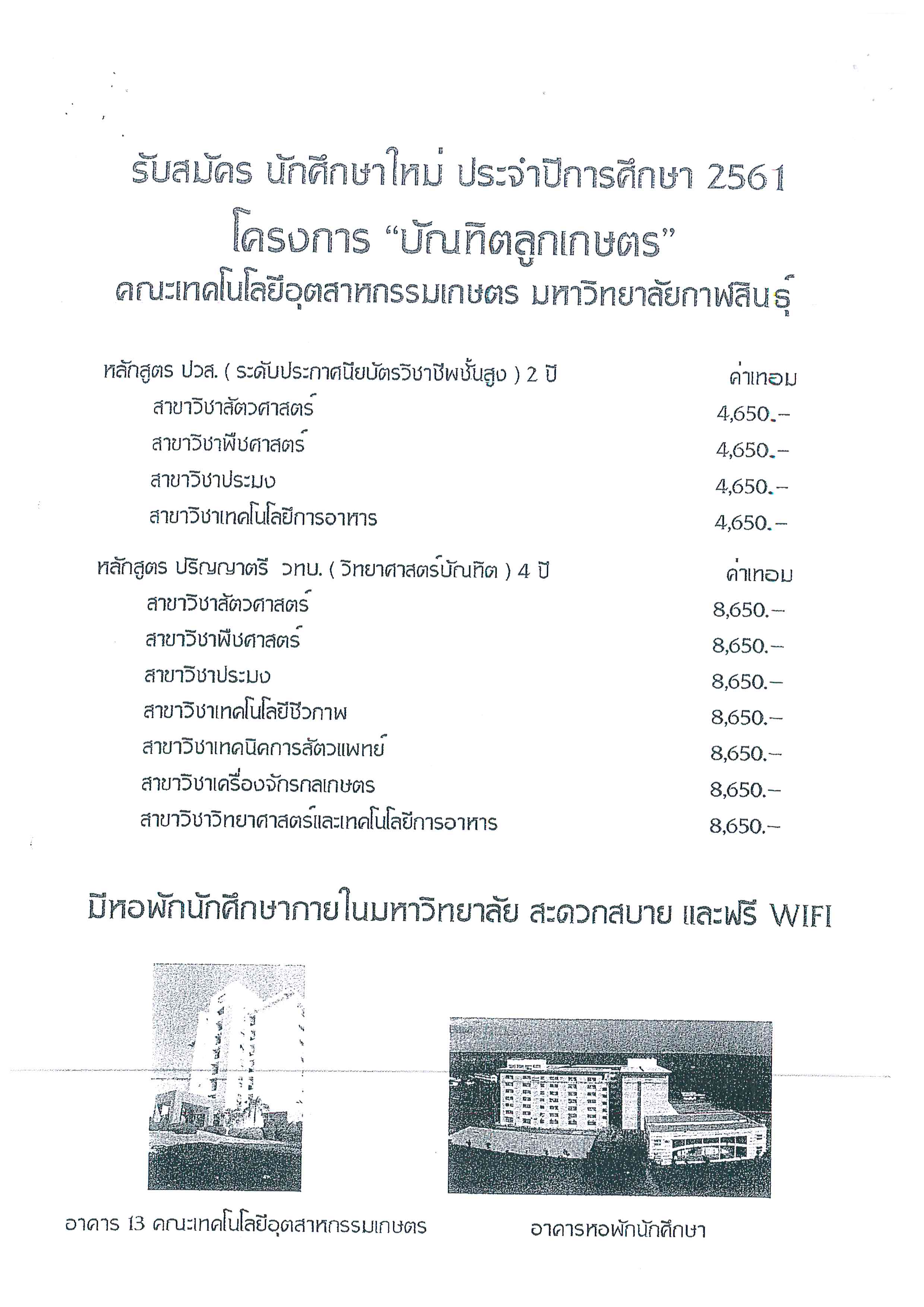 ประชาสัมพันธ์ : โครงการ "บัณฑิตลูกเกษตรกร" มหาวิทยาลัยกาฬสินธุ์