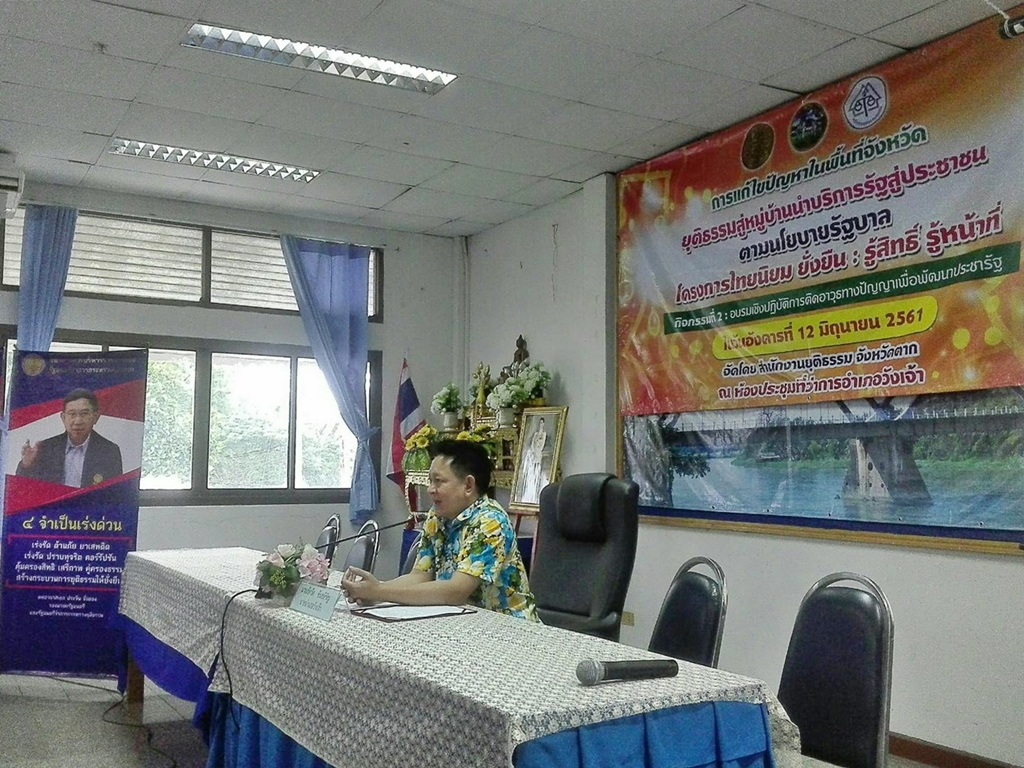 นางสาวกนกวรรณ ตันติคะเนดี หัวหน้าสำนักงานสภาเกษตรกรจังหวัดตาก ร่วมเป็นวิทยากร ออกหน่วยให้บริการประชาชนในโครงการ "การประชุมเชิงปฏิบัติการเพื่อส่งเสริมยุติธรรมสู่หมู่บ้านนำบริการรัฐสู่ประชาชน" พื้นที่อำเภอวังเจ้า ได้บรรยายในหัวข้อ "การอำนวยความเป็นธรรม เพื่อลดความเลื่อมล้ำในสังคม ภายใต้กรอบนโยบายการขับเคลื่อนการพัฒนาประเทศตามโครงการไทยนิยมยั่งยืน รู้สิทธิ์ รู้หน้าที่ ตามภารกิจหน่วยงาน" ทั้งนี้ ได้รับเกียรติจากนายภัควัต ขันธหิรัญ นายอำเภอวังเจ้า เป็นประธานกล่าวเปิดโครงการฯ เมื่อวันที่ 12 มิถุนายน 2561 ณ ห้องประชุมที่ว่าการอำเภอวังเจ้า จังหวัดตาก