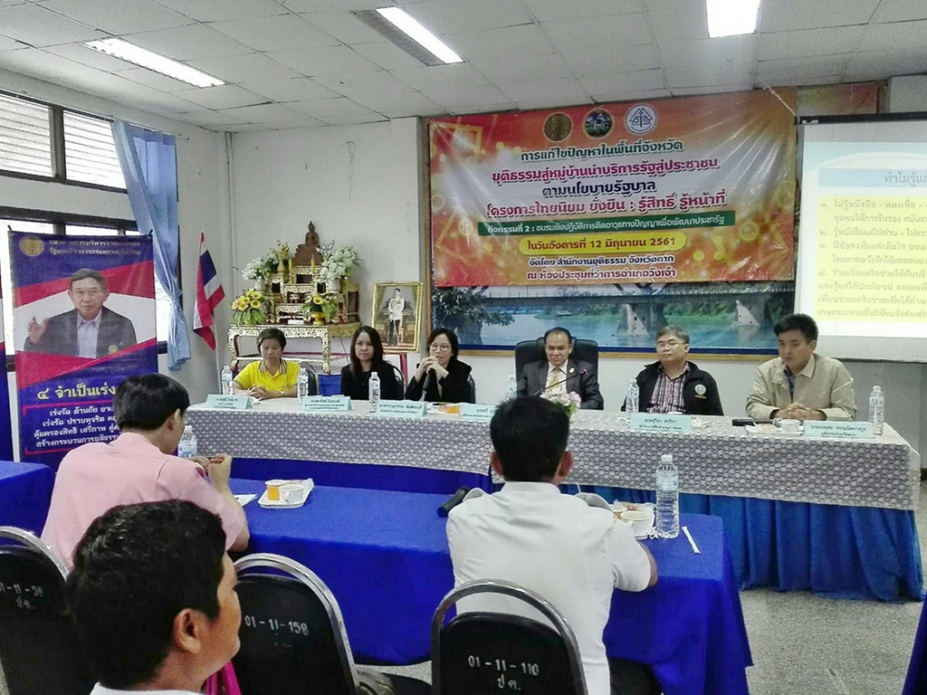 ออกหน่วยให้บริการประชาชนในโครงการ "การประชุมเชิงปฏิบัติการเพื่อส่งเสริมยุติธรรมสู่หมู่บ้านนำบริการรัฐสู่ประชาชน" พื้นที่อำเภอวังเจ้า