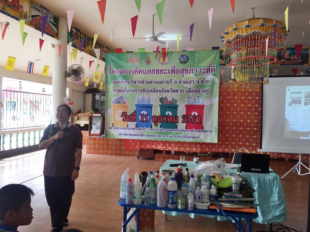 เมื่อวันที่ 11 ตุลาคม 2561 เวลา 8.00-16.30 น. ประธานสภาเกษตรกรจังหวัดตาก นางสาวโสภาพรรณ กาสมสัน เข้าร่วมประชุมสังเกตการณ์โครงการอบรมหลักสูตรครู ก เพื่อการคัดแยกขยะเชิงธุรกิจ (Business) ตามที่จังหวัดตากได้มีคำสั่งแต่งตั้งคณะทำงานสนับสนุนโครงการขับเคลื่อนจังหวัดตากเมืองน่าอยู่ จึงดำเนินโครงการฯ เพื่อให้เป็นไปตามวัตถุประสงค์ โดยมีการอบรมให้ความรู้เรื่องการตัดแยกกระดาษ ขวดแก้ว ถุงพลาสติกและพลาสติกจากอุตสาหกรรม แก่ประชาชนพื้นที่ตำบลย่ายรี ณ หอประชุมองค์การบริหารส่วนตำบลย่านรี อ.สามเงา จ.ตาก