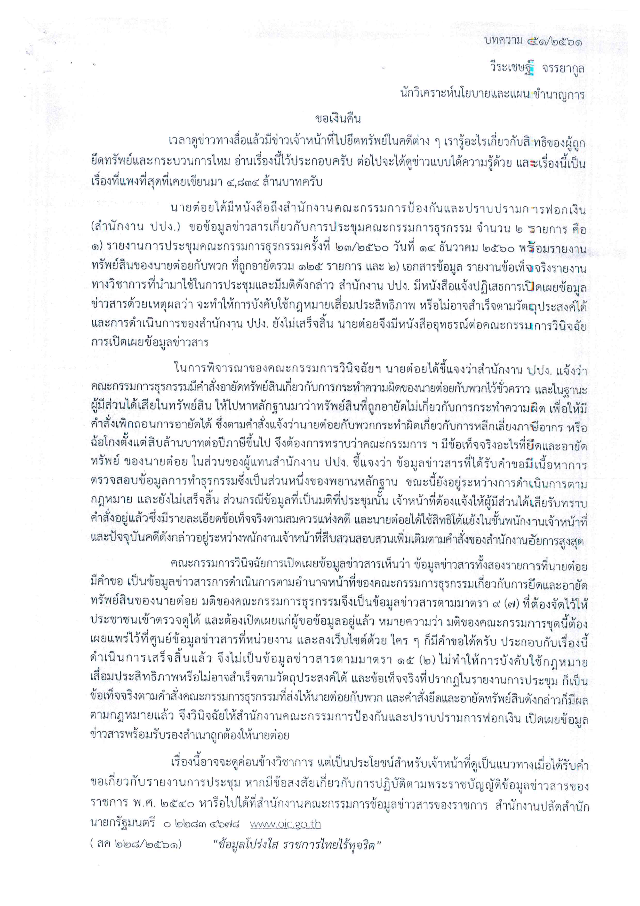 - บทความเรื่อง ขอติดค้างไว้ก่อน