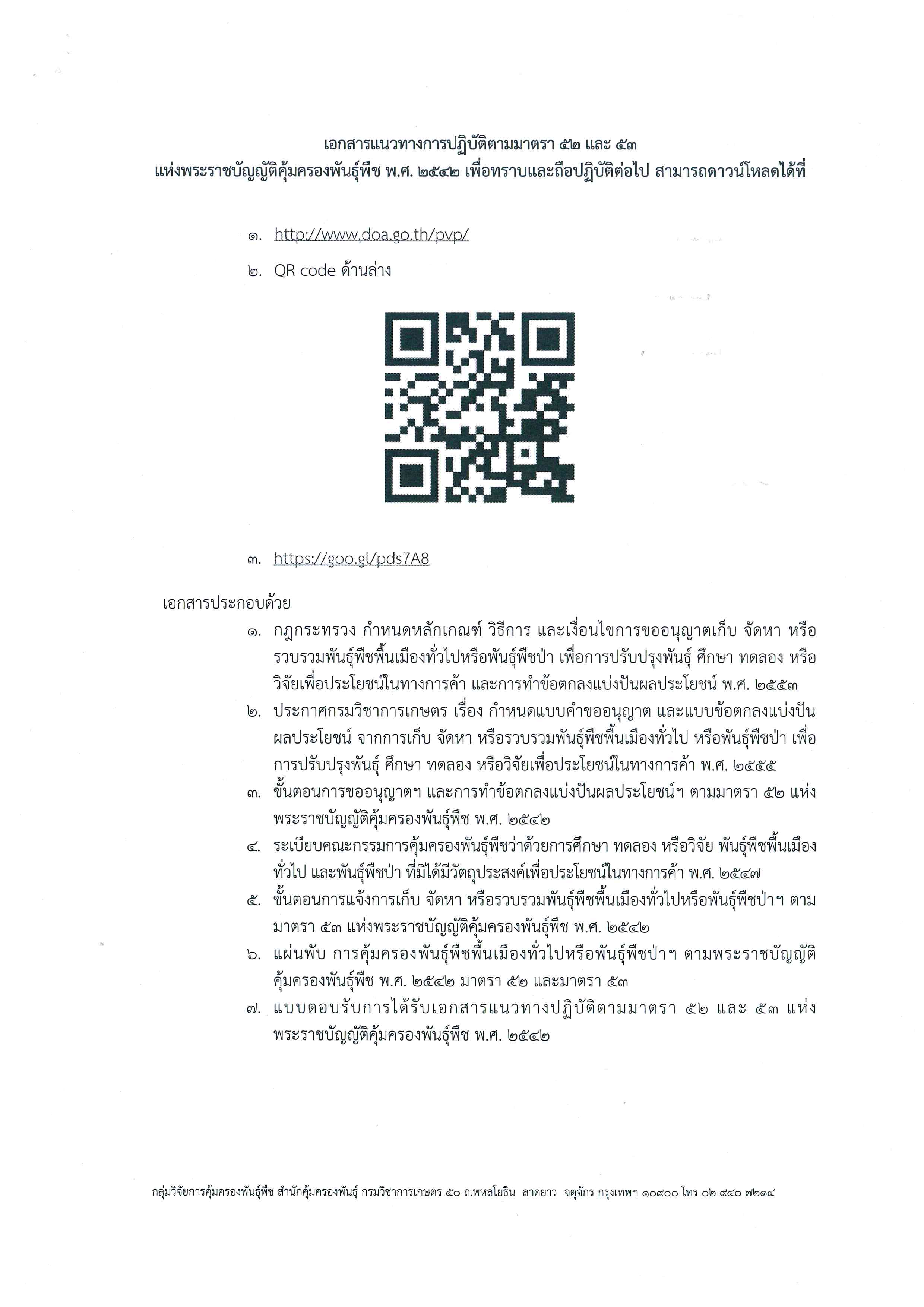 การคุ้มครองพันธุ์พืชพื้นเมืองทั่วไปและพันธุ์พืชป่า ตามพระราชบัญญัติคุ้มครองพันธุ์พืช พ.ศ. 2542 มาตรา 52 และมาตรา 53 พร้อมด้วยแนวทางการปฏิบัติตามมาตราดังกล่าว โดย สำนักคุ้มครองพันธุ์พืช กรมวิชาการเกษตร กระทรวงเกษตรและสหกรณ์
