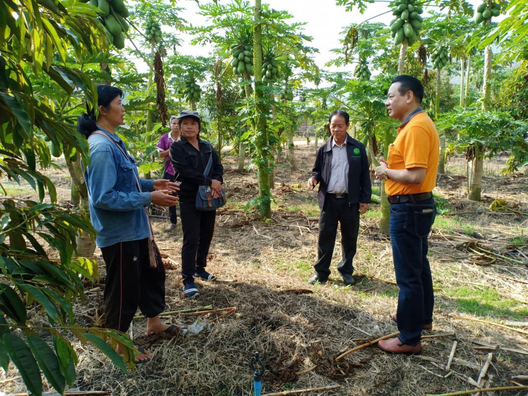 วันที่ 28 มีนาคม 2562 นางสาวโสภาพรรณ กาสมสัน ประธานสภาเกษตรกรจังหวัดตาก และนายสวัสดิ์ โนนสูง สมาชิกสภาเกษตรกรจังหวัดตาก ผู้ทรงคุณวุฒิด้านพืช หารือร่วมกับ นายสถาพร ณ นคร สหกรณ์จังหวัดตาก เพื่อส่งเสริมและขยายผลการปลูกพืชทางเลือกให้แก่สมาชิกสหกรณ์ พื้นที่อำเภออุ้มผาง จังหวัดตาก โดยนำลงพื้นที่สำรจการปรับเปลี่ยนการปลูกพืชไร่เชิงเดี่ยว (ข้าวโพดเลี้ยงสัตว์) เป็นการปลูกมะละกอพันธุ์ฮอลแลนด์ของเกษตรกรในพื้นที่ ต.แม่กลอง และต.แม่ละมุ้ง อ.อุ้มผาง จ.ตาก และชมแปลงสาธิต การตัดแต่ง ฟื้นฟู สวนมะละกอพันธุ์ฮอลแลนด์ (อายุต้นมะละกอ กว่า 3 ปี) และระบบการให้น้ำอัจฉริยะ พื้นที่รวมกว่า 1 ไร่ ณ หมู่ที่ 2 บ้านเซปะหละ ต.แม่ละมุ้ง อ.อุ้มผาง เพื่อให้ต้นมะละกอกลับมาให้ผลผลิตได้สูงขึั้น ซึ่งสภาเกษตรกรจังหวัดตากดำเนินการร่วมกับนายชัยชนะ เหรียญทอง ผู้ช่วยกำนัน ต.แม่ละมุ้ง อ.อุ้มผาง จ.ตาก เจ้าของที่ดินแปลงปลูกมะละกอ ทั้งนี้ สหกรณ์จังหวัดตากมีเป้าหมายในการศึกษาแนวทางเพื่อส่งเสริมและช่วยเหลือสมาชิกสหกรณ์ที่ได้รับผลกระทบจากภัยธรรมชาติ ทั้งที่อยู่ในพื้นที่อำเภออุ้มผาง และพื้นที่อื่นๆ จังหวัดตาก ภายใต้โครงการส่งเสริมอาชีพสมาชิกสหกรณ์ที่ได้รับผลกระทบจากภัยแล้ง ของกรมส่งเสริมสหกรณ์ ต่อไป