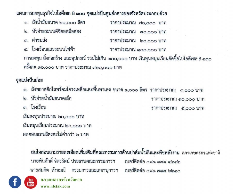 ประชาสัมพันธ์ : แผนการลงทุนธุรกิจไบโอดีเซล B 100
