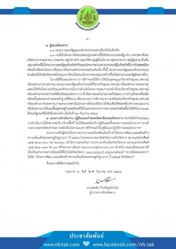 ประกาศจังหวัดตาก เรื่อง การเสนอโครงการพัฒนาและเสริมสร้างความเข้มแข็งของเศรษฐกิจฐานราก ปี 2565 จังหวัดตาก