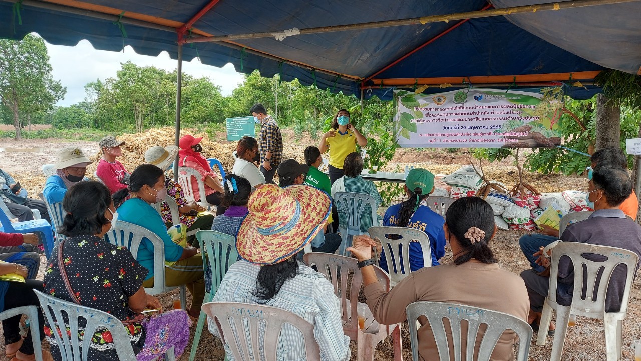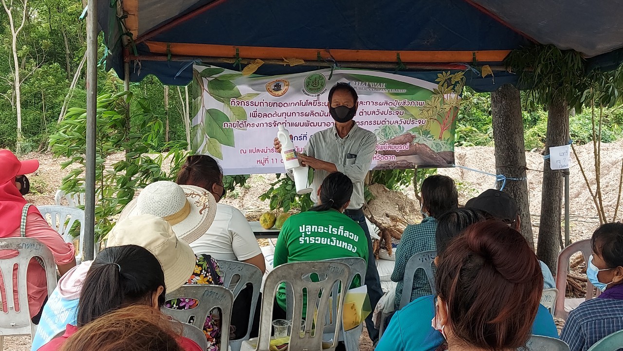 ประธานสภาเกษตรกรจังหวัดตาก นางสาวโสภาพรรณ กาสมสัน จึงได้นำทีมจัดกิจกรรมถ่ายทอดเทคโนโลยีระบบน้ำหยดและการผลิตปุ๋ยชีวภาพ เพื่อลดต้นทุนการผลิตมันสำปะหลัง ตำบลวังประจบ ภายใต้โครงการจัดทำแผนพัฒนาอาชีพเกษตรกรรมตำบลวังประจบ เมื่อวันที่ 20 พฤษภาคม 2565 ตั้งแต่เวลา 09.00 น. ณ แปลงนำร่องปลูกมันสำปะหลัง (พันธุ์แวกซี่) บ้านทรัพย์สมบูรณ์ หมู่ 11 อำเภอเมืองตาก จังหวัดตาก เพื่อเพิ่มประสิทธิภาพการผลิตมันสำปะหลัง พัฒนากระบวนการผลิต พันธุ์ที่เหมาะสมกับสภาพพื้นที่ การวางแผนการเพาะปลูกให้สอดคล้องกับความต้องการตลาด โดยได้รับเกียรติจาก องค์การบริหารส่วนตำบลวังประจบ, บริษัท ไทยวา จำกัด (มหาชน) และนายสวัสดิ์ โนนสูง สมาชิกสภาเกษตรกรจังหวัดตาก ผู้ทรงคุณวุฒิด้านพืช ร่วมให้ข้อมูล คำแนะนำ และร่วมเป็นวิทยากรในครั้งนี้