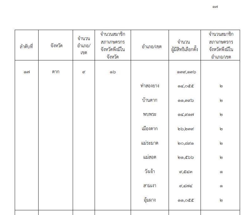 ประกาศสำนักงานสภาเกษตรกรแห่งชาติ เรื่องจำนวนสมาชิกสภาเกษตรกรจังหวัดพึงมีในแต่ละจังหวัด และจำนวนสมาชิกสภาเกษตรกรจังหวัดพึงมีในแต่ละอำเภอ ลงวันที่ 11 มกราคม 2566