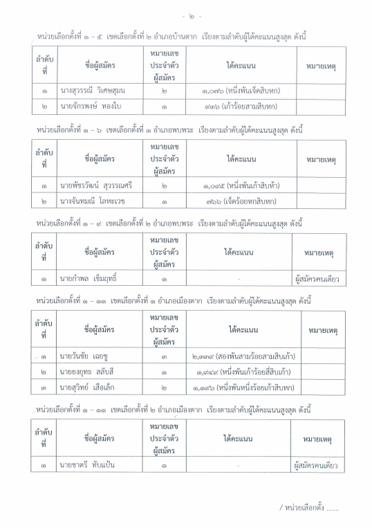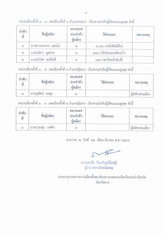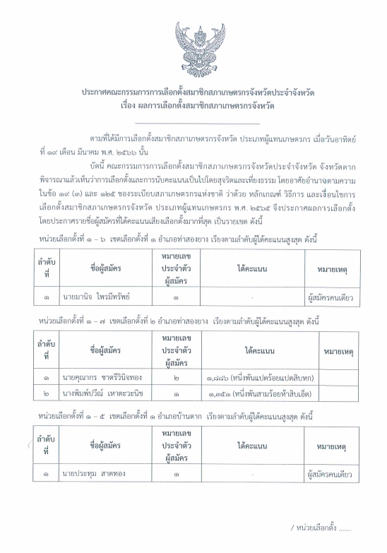 ประกาศคณะกรรมการการเลือกตั้งสมาชิกสภาเกษตรกรจังหวัด ประจำจังหวัด จังหวัดตาก