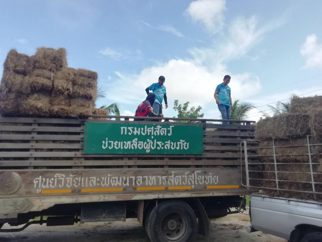 การรับมอบเสบียงอาหารสัตว์หญ้าอาหารสัตว์ได้รับพระราชทานจากพระบาทสมเด็จพระเจ้าอยู่หัว