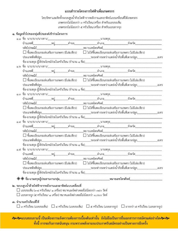 แบบสอบถามไฟฟ้าเพื่อการเกษตร