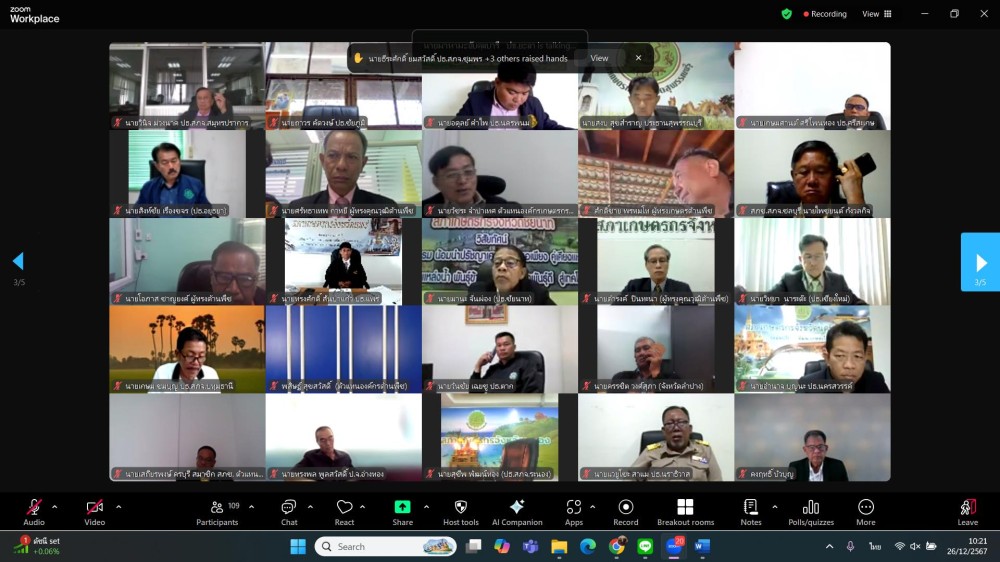 วันนี้ (26 ธันวาคม 2567) เวลา 09.00 น. นายวันชัย เฉยชู ประธานสภาเกษตรกรจังหวัดตาก เข้าร่วมการประชุมสภาเกษตรกรแห่งชาติ ครั้งที่ 2/2568 ณ ห้องประชุมสำนักงานสภาเกษตรกรจังหวัดตาก ผ่านสื่ออิเล็กทรอนิกส์ (Zoom Meeting) โดยมี นายนัยฤทธิ์ จำเล ประธานสภาเกษตรกรแห่งชาติ เป็นประธานการประชุม พร้อมด้วยสมาชิกสภาเกษตรกรแห่งชาติ 77 จังหวัด ผู้แทนองค์กรเกษตรกร และผู้ทรงคุณวุฒิด้านพืช ด้านสัตว์ ด้านประมง โดยในการประชุมครั้งนี้ มีวาระการพิจารณาที่สำคัญเพื่อแก้ไขปัญหาและพัฒนาเกษตรกรรม ดังนี้