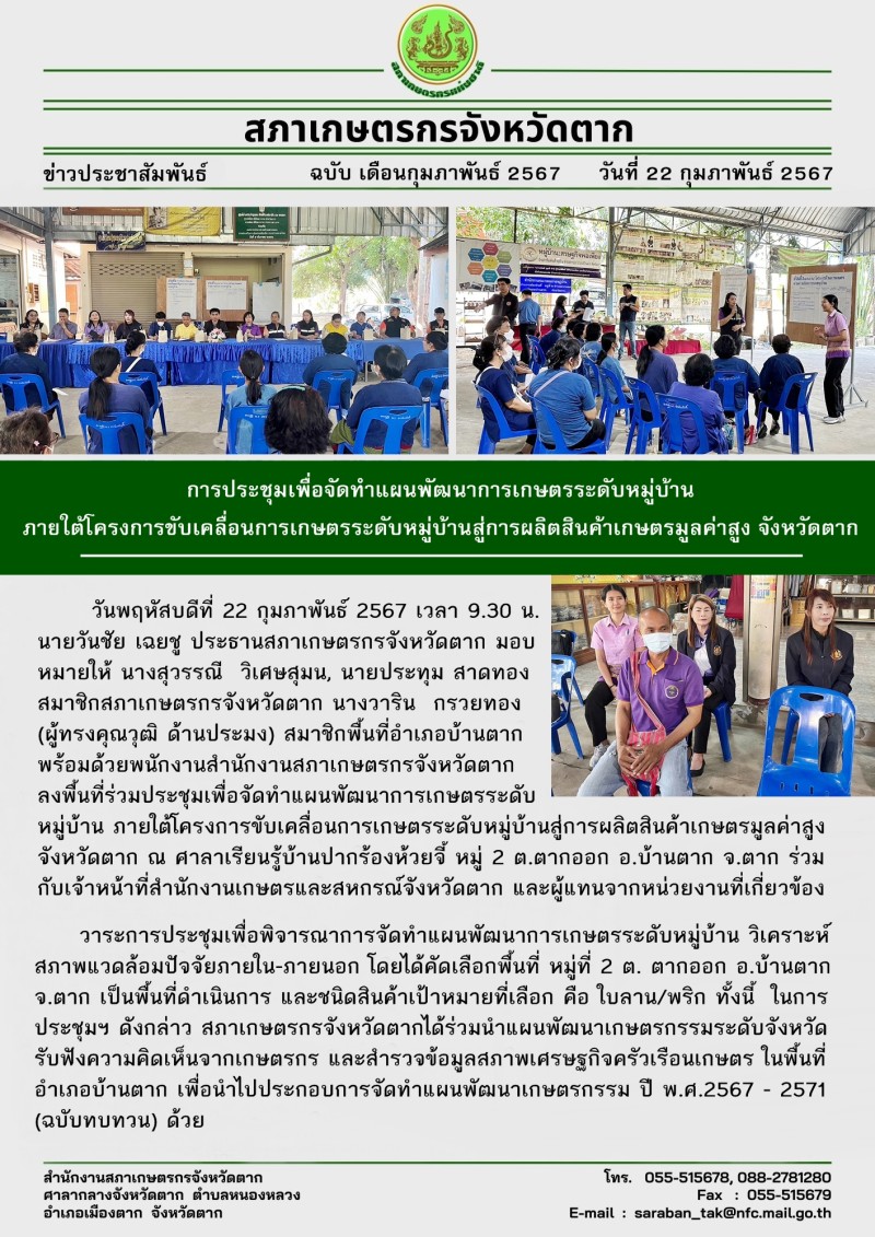 แผนพัฒนาเกษตรกรรมจังหวัดตาก