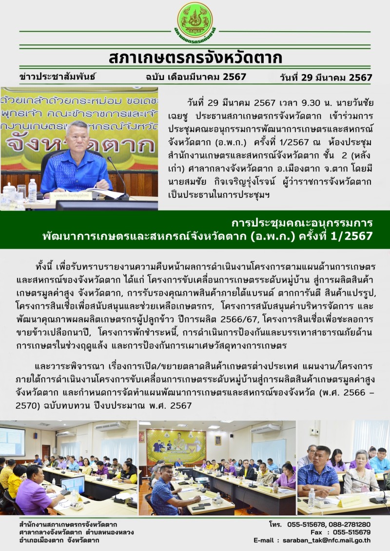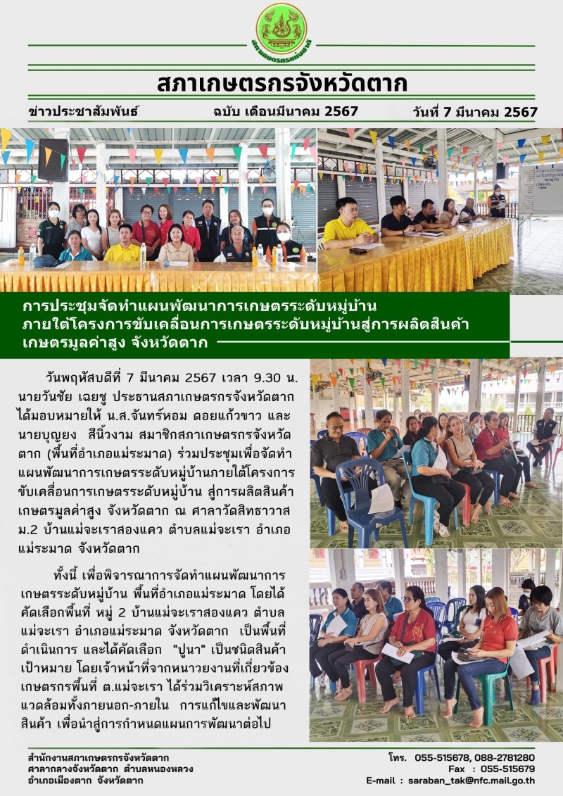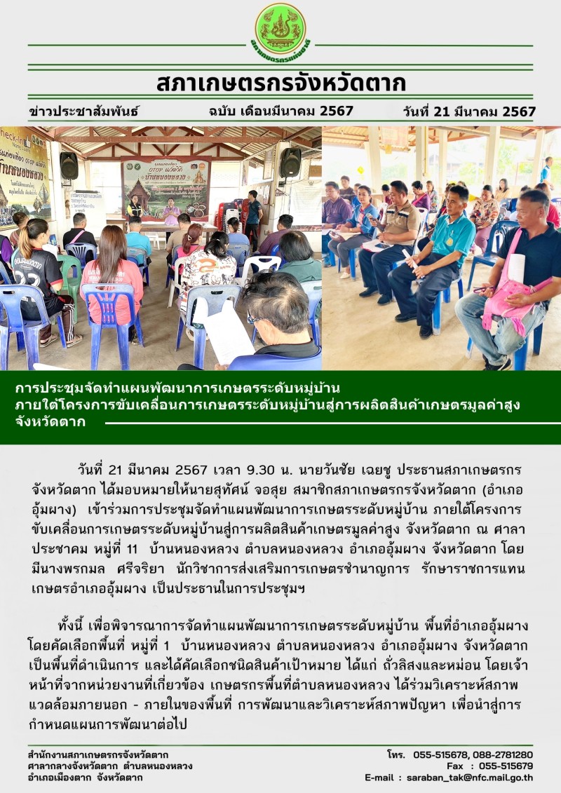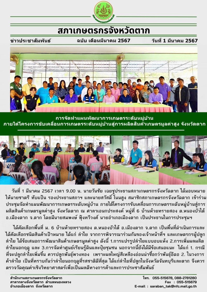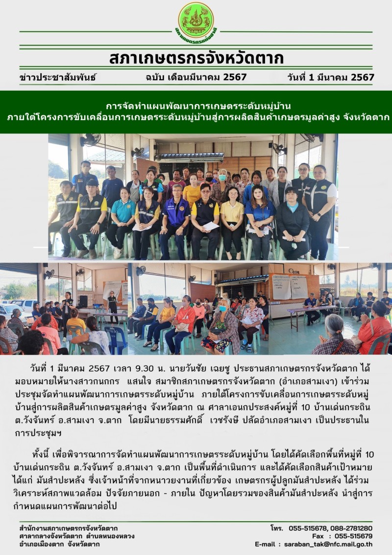 แผนพัฒนาเกษตรกรรมจังหวัดตาก