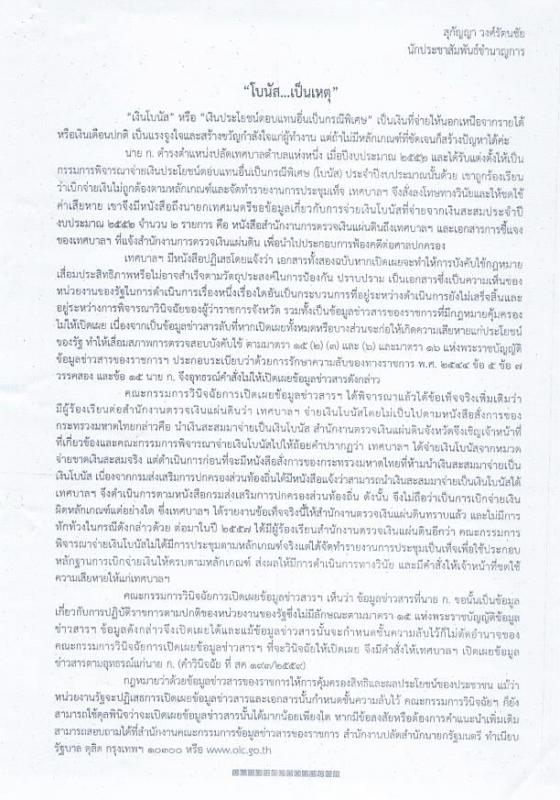 3. บทความเรื่อง โบนัส เป็นเหตุ