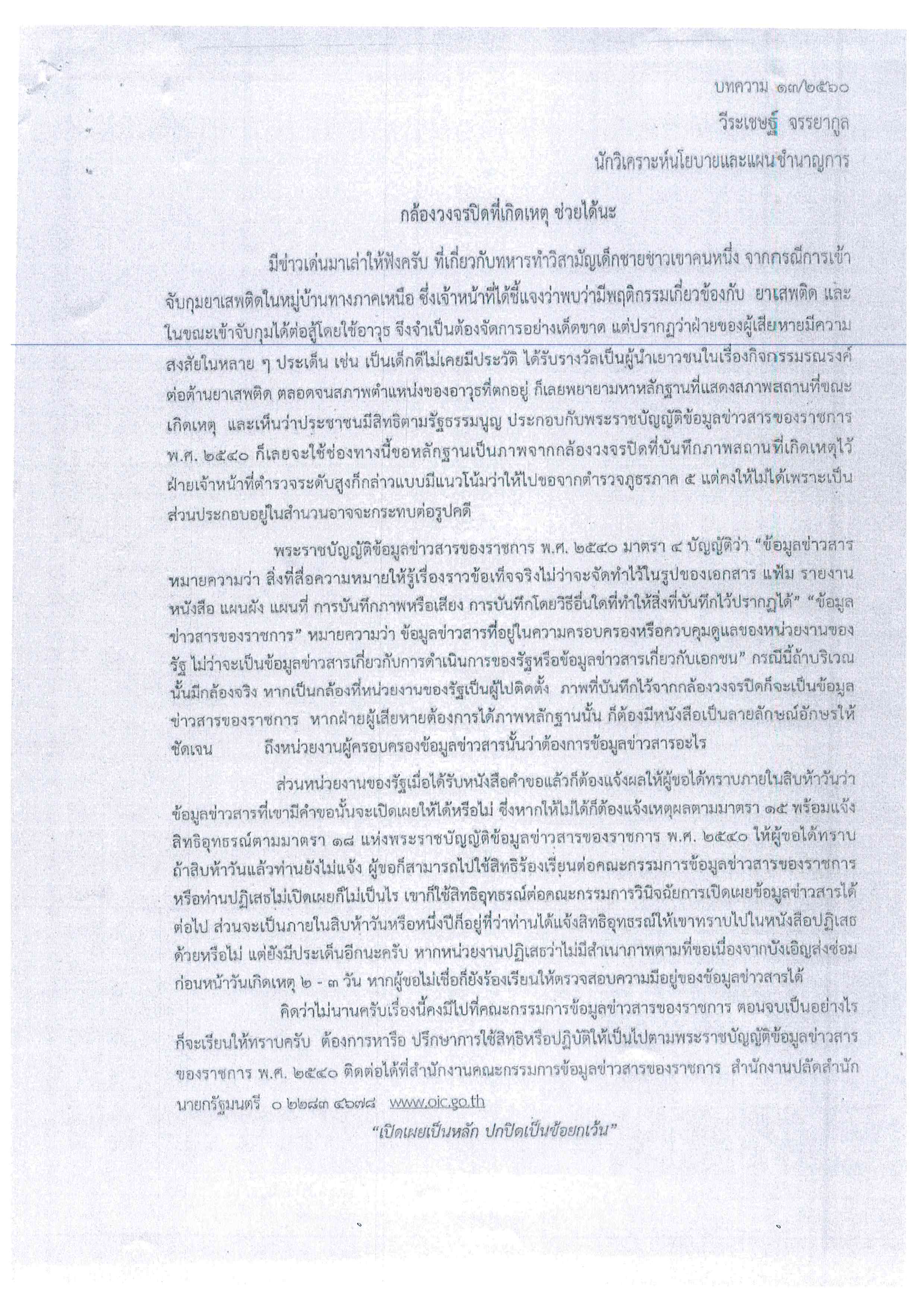 1) บทความเรื่อง กล้องวงจรปิดที่เกิดเหตุ ช่วยได้นะ