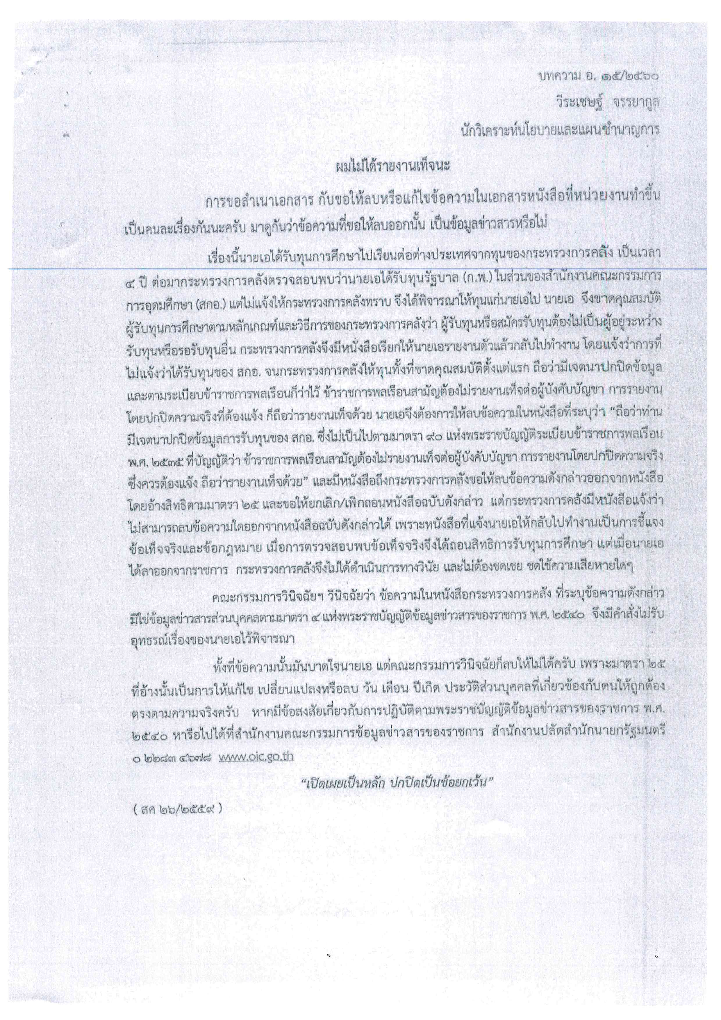 3) บทความเรื่อง ผมไม่ได้รายงานเท็จนะ