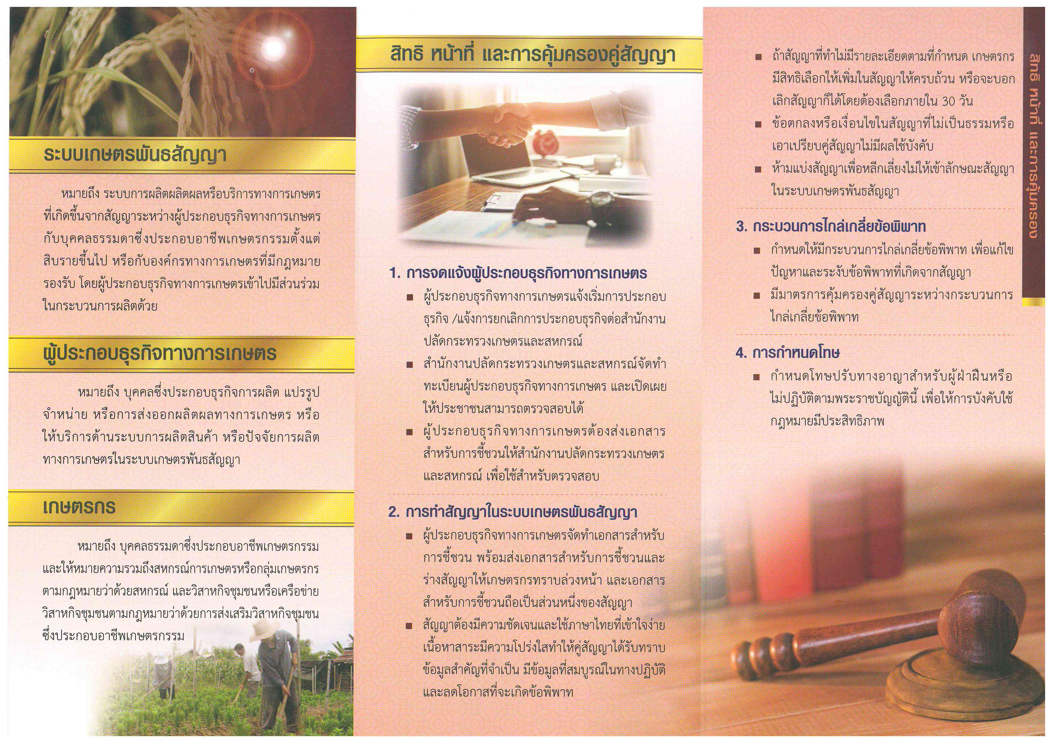 ประชาสัมพันธ์ สิทธิ หน้าที่ และการคุ้มครอง ตามพระราชบัญญัติส่งเสริมและพัฒนาระบบเกษตรพันธสัญญา พ.ศ.2560