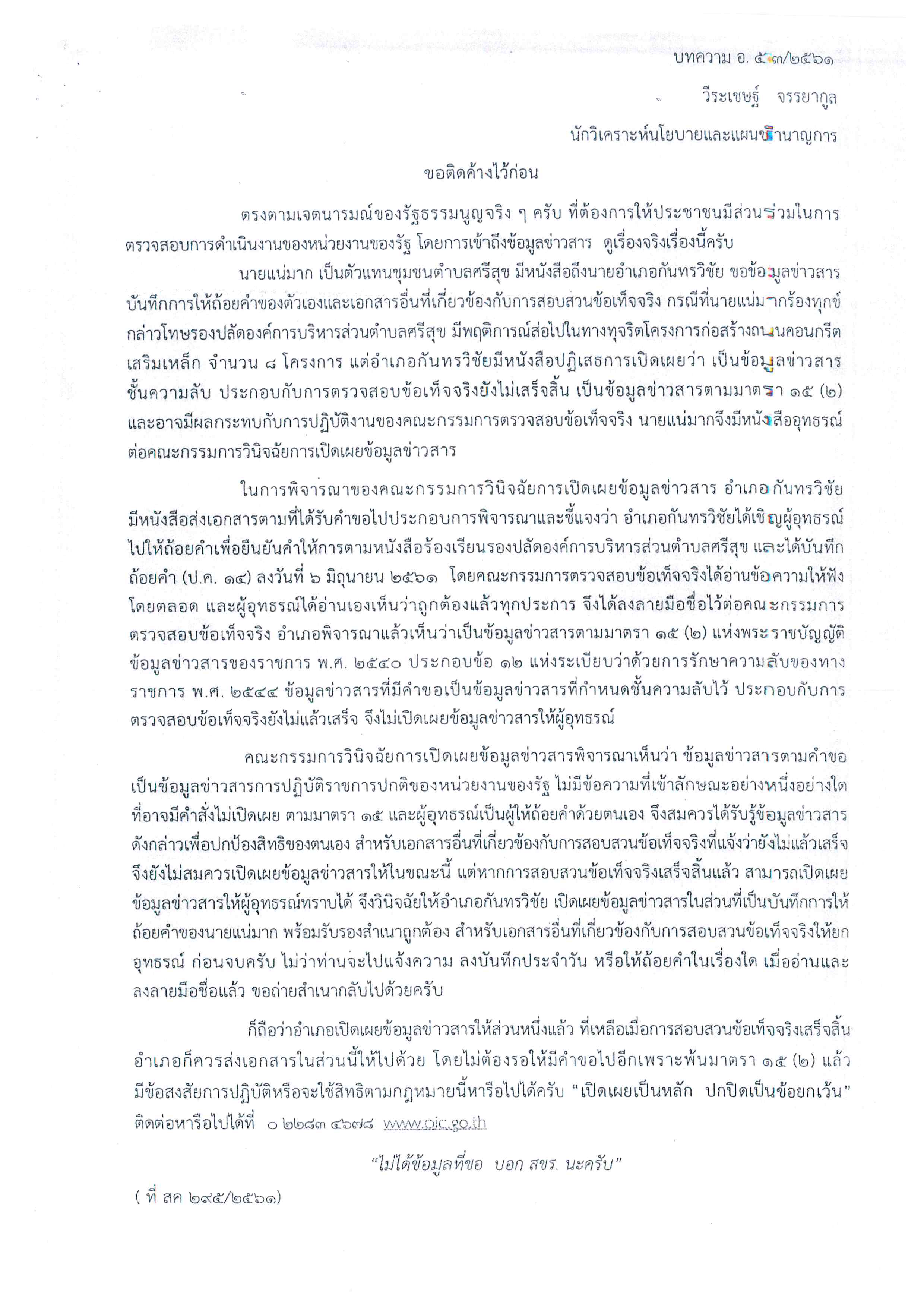 โดย สำนักงานคณะกรรมการจ้อมูลข่าวสารของราชการ สำนักงานปลัดสำนักนายกรัฐมนตรี