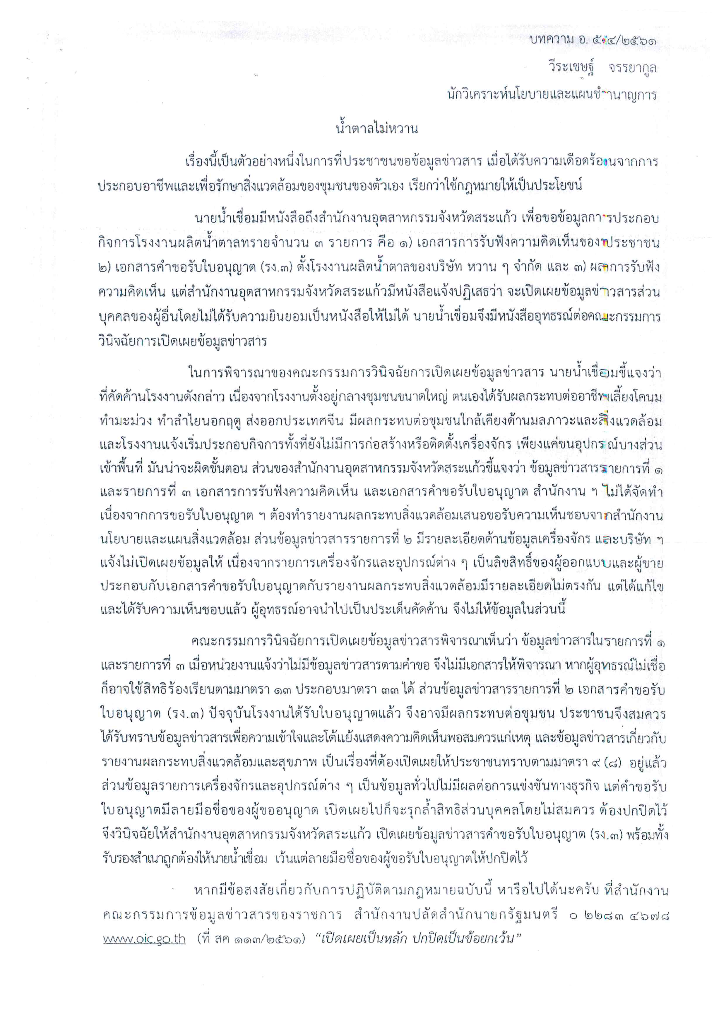 - บทความเรื่อง น้ำตาลไม่หวาน