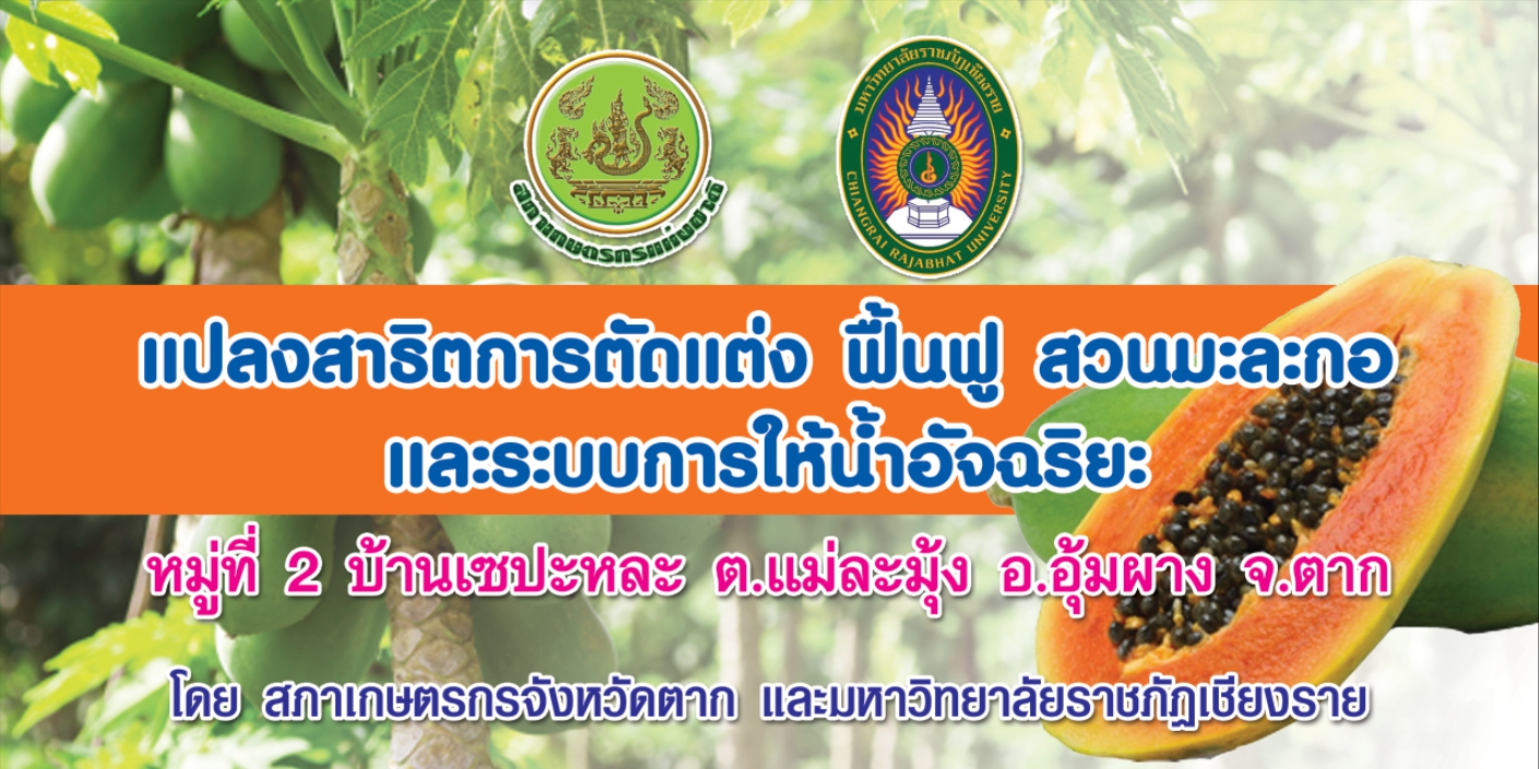 สภาเกษตรกรจังหวัดตาก โดยนายสวัสดิ์ โนนสูง สมาชิกสภาเกษตรกรจังหวัดตาก ผู้ทรงคุณวุฒิด้านพืช ดำเนินการจัดตั้งแปลงสาธิต การตัดแต่ง ฟื้นฟู สวนมะละกอพันธุ์ฮอลแลนด์ (อายุต้นมะละกอ กว่า 3 ปี) และระบบการให้น้ำอัจฉริยะ พื้นที่รวมกว่า 1 ไร่ ณ หมู่ที่ 2 บ้านเซปะหละ ต.แม่ละมุ้ง อ.อุ้มผาง เพื่อใ้ห้ต้นมะละกอกลับมาให้ผลผลิตได้สูงขึั้น ระยะเวลาดำเนินการ มีนาคม - มิถุนายน 2562 โดยรับอนุญาตจาก นายนวชัย ดลใจคณาทรัพย์ ผู้ช่วยกำนัน ต.แม่ละมุ้ง อ.อุ้มผาง จ.ตาก ให้ใช้ที่ดินแปลงปลูกมะละกอของตน เป็นแปลงสาธิตฯ และได้รับความอนุเคราะห์จากคุณประพัฒน์ วงษ์คำหาญ (ช่างเทคนิค สวท. แม่สอด) ช่วยติดตั้งระบบการให้น้ำอัจฉริยะ ในแปลงสาธิตฯ ดังกล่าว เพื่อเป็นสถานที่เรียนรู้แปลงปลูกมะละกอให้แก่เกษตรกรในพื้นที่ใกล้เคียง ต่อไป ทั้งนี้ งบประมาณในการดำเนินการส่วนหนึ่งได้รับการสนับสนุน โดยหัวหน้าคณะวิจัยฯ รศ.ดร.กัสมา กาซ้อน มหาวิทยาลัยราชภัฎเชียงราย
