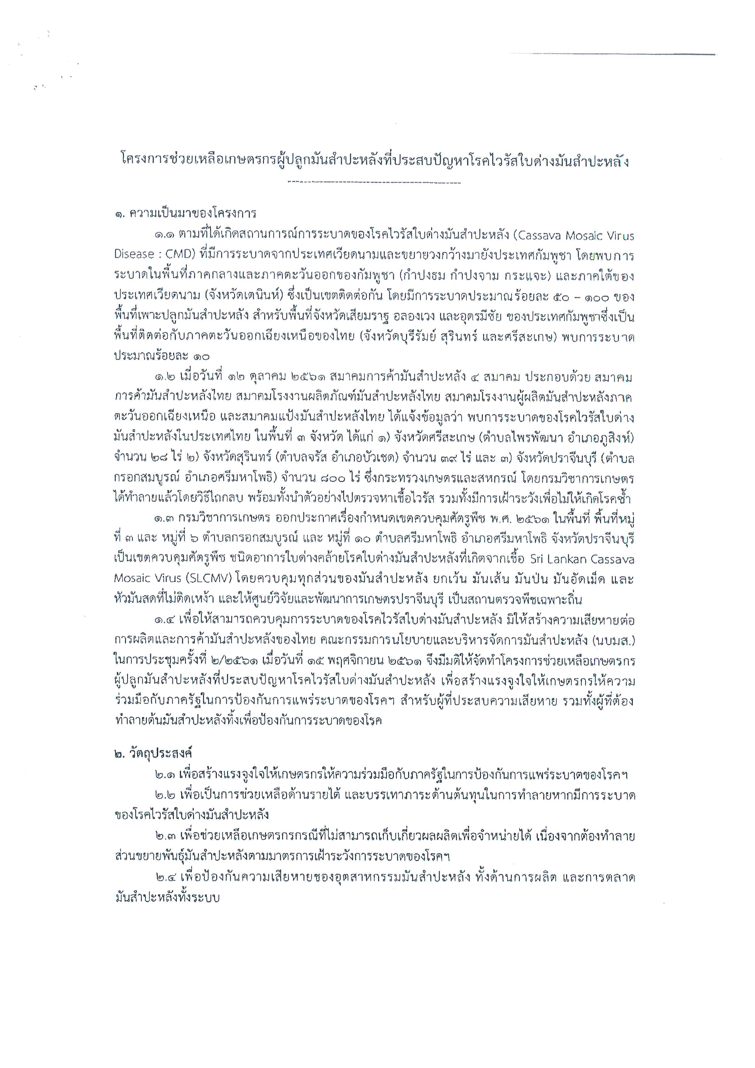 ประชาสัมพันธ์ โครงการช่วยเหลือเกษตรกรผู้ปลูกมันสำปะหลังที่ประสบปัญหาโรคไวรัสใบด่างมันสำปะหลัง