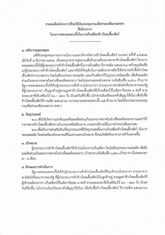 ประกาศคณะอนุกรรมการพิจารณาชดเชยดอกเบี้ยให้แก่ผู้ประกอบการค้าข้าวโพดเลี้ยงสัตว์ในการเก็บสต๊อก เรื่อง หลักเกณฑ์ วิธีการ และแนวทางปฏิบัติ การดำเนินโครงการชดเชยดอกเบี้ยในการเก็บสต๊อกข้าวโพดเลี้ยงสัตว์