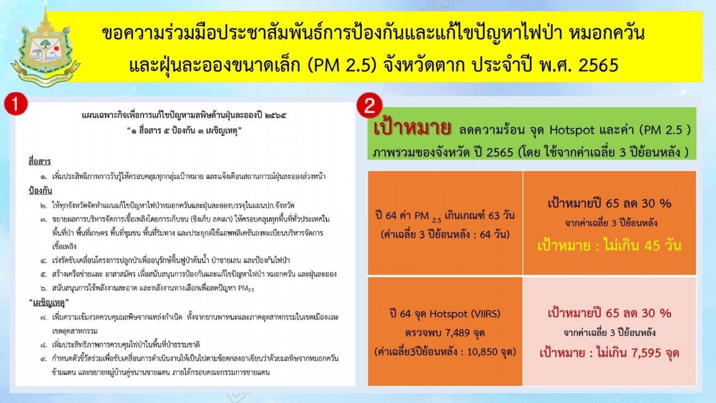 ประกาศจังหวัดตาก เรื่อง ขอความร่วมมือห้ามเผาในพื้นที่จังหวัดตาก ประจำปี 2565