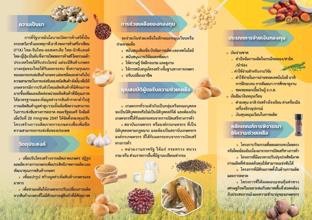 สำนักงานเศรษฐกิจการเกษตร โดยสำนักวิจัยเศรษฐกิจการเกษตร ประชาสัมพันธ์ กองทุนการปรับโครงสร้างการผลิตภาคการเกษตรเพื่อเพิ่มขีดความสามารถการแข่งขันของประเทศ สำหรับผู้เกี่ยวข้องและผู้ที่สนใจ ในการใช้เป็นแนวทางประกอบการเขียนโครงการขอรับการสนับสนุนจากกองทุนปรับโครงสร้างการผลิตภาคเกษตรฯ