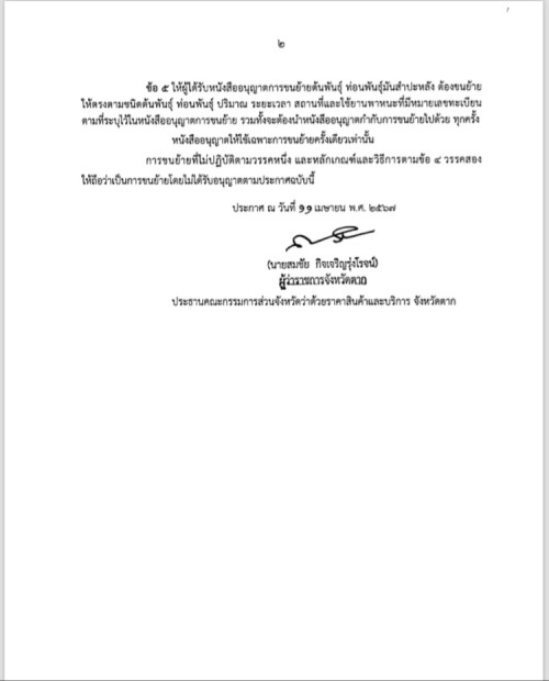 ประชาสัมพันธ์ : ประกาศจังหวัดตาก เรื่องการควบคุมการขนย้ายต้นพันธุ์ และท่อนพันธ์มันสำปะหลัง และเรื่องหลักเกณฑ์และวิธีการในการขออนุญาต การอนุญาต แบบหนังสืออนุญาต และวิธีการขนย้ายต้นพันธุ์ ท่อนพันธุ์มันสำปะหลัง