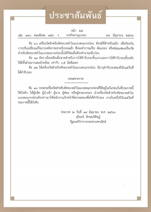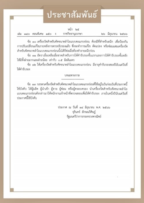 ประชาสัมพันธ์ เกษตรกรผู้ปลูกลำไย ที่มีเครื่องวัดสำหรับคัดขนาดลำไยแบบตะแกรงร่อน ตรวจสอบรายละเอียดของวัสดุที่ใช้ผลิต อัตราเผื่อเหลือเผื่อขาดและอายุคำรับรอง โดยให้ผู้ครอบครองนำเครื่องฯ มาตรวจสอบคำร้องกับพนักงานเจ้าหน้าที่ โดยสอบถามข้อมูลเพิ่มเติมได้ที่ สำนักงานพาณิชย์จังหวัดตาก โทร 055 511 049