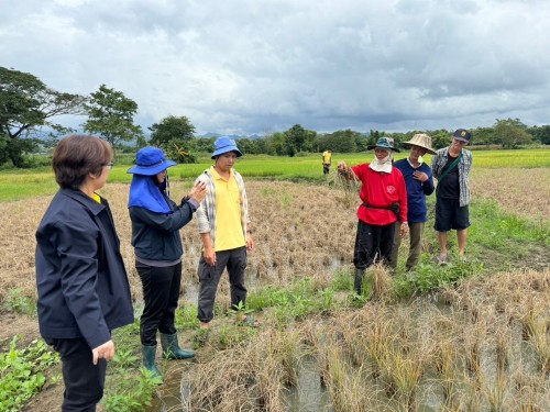 วันนี้ (23 กันยายน 2567) เวลา 10.00 น. นางสาวกนกวรรณ ตันติคะเนดี หัวหน้าสำนักงานสภาเกษตรกรจังหวัดตาก พร้อมเจ้าหน้าที่ ลงพื้นที่ร่วมกับเจ้าหน้าที่สำนักงานเกษตรอำเภอแม่สอด และศูนย์เมล็ดพันธุ์ข้าวกำแพงเพชร เพื่อตรวจสอบและเก็บข้อมูลแปลงนาข้าวที่ได้รับผลกระทบจากแมลงศัตรูพืช ในพื้นที่ตำบลพะวอ อำเภอแม่สอด จังหวัดตาก โดยเบื้อต้นพบว่านาข้าวที่ได้รับผลกระทบจากโรคแมลงเพลี้ยกระโดด เสียหายเกินกว่าร้อยละ 70 ของพื้นที่ปลูกข้าว