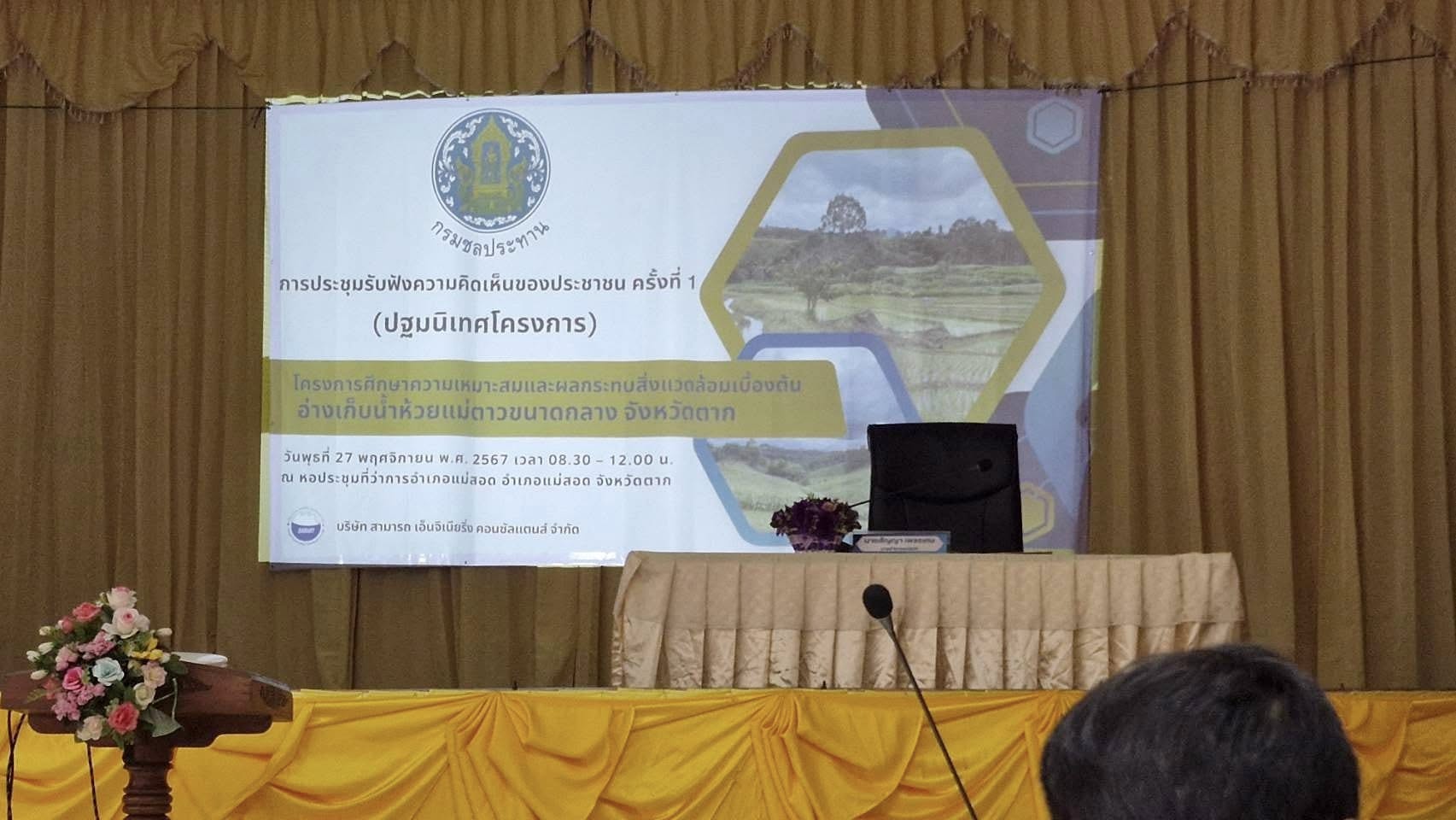 การประชุมการรับฟังความคิดเห็นของประชาชน ครั้งที่ 1 (ปฐมนิเทศโครงการ) โครงการศึกษาควาามเหมาะสมและผลกระทบสิ่งแวดล้อมเบื้องต้น อ่างเก็บน้ำห้วยแม่ตาวขนาดกลาง