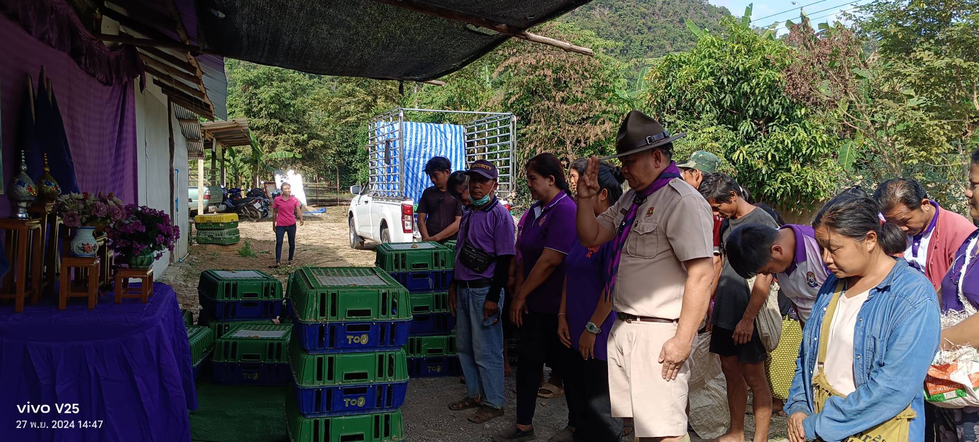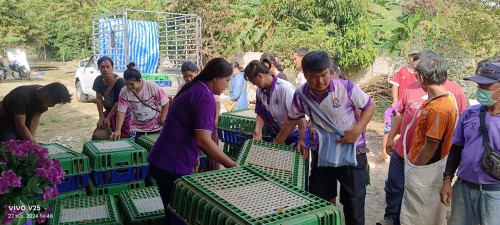 วันที่ 27 พฤศจิกายน 2567 นางพิมพ์ปวีณ์ เหาตะวะนิช สมาชิกสภาเกษตรกรจังหวัดตาก (รองประธานศูนย์เรียนรู้โครงการอันเนื่องมาจากพระราชดำริ ตำบลท่าสองยาง) เข้ารับมอบพันธุ์เป็ดไข่พระราชทาน จากสมเด็จพระขนิษฐาธิราชเจ้า กรมสมเด็จพระเทพรัตนราชสุดาฯสยามบรมราชกุมารี ณ ศูนย์เรียนรู้โครงการอันเนื่องมาจากพระราชดำริราษฎร ตำบลท่าสองยาง หมู่ที่ ๙ ตำบลท่าสองยาง อำเภอท่าสองยาง จังหวัดตาก จำนวน ๕๓๐ ตัว โดยมีนาย ชนมงคล นอนา ผู้อำนวยการโรงเรียนชุมชนบ้านท่าสองยาง เป็นประธาน ในพิธีฯ ซึ่งมอบให้กับประชาชนในพื้นที่ตำบลท่าสองยาง อำเภอท่าสองยาง จังหวัดตาก นำไปเลี้ยงเพื่อสร้างความมั่นคงทางอาหาร และ ขยายพันธุ์ต่อไป