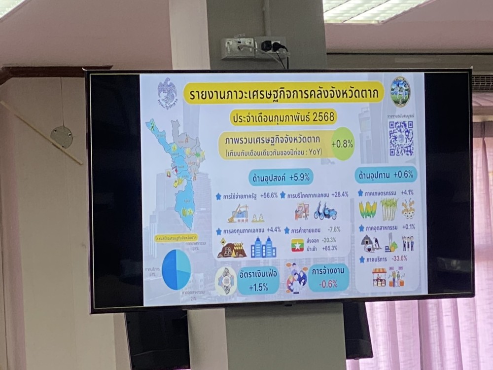 ทั้งนี้ ที่ประชุมได้รับทราบรายงานภาวะเศรษฐกิจของจังหวัดตาก ประจำเดือนกุมภาพันธ์ 2568 และประมาณการเศรษฐกิจจังหวัดตาก ประจำไตรมาสที่ 1/2568 รายงานสภาวะการค้าชายแดน สถานการณ์ท่องเที่ยว และโครงการปรับปรุงลู่วิ่ง สนามกีฬา 5 อำเภอชายแดน ในการประชุมฯ ครั้งนี้ด้วย